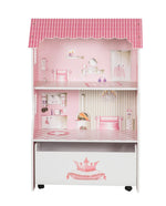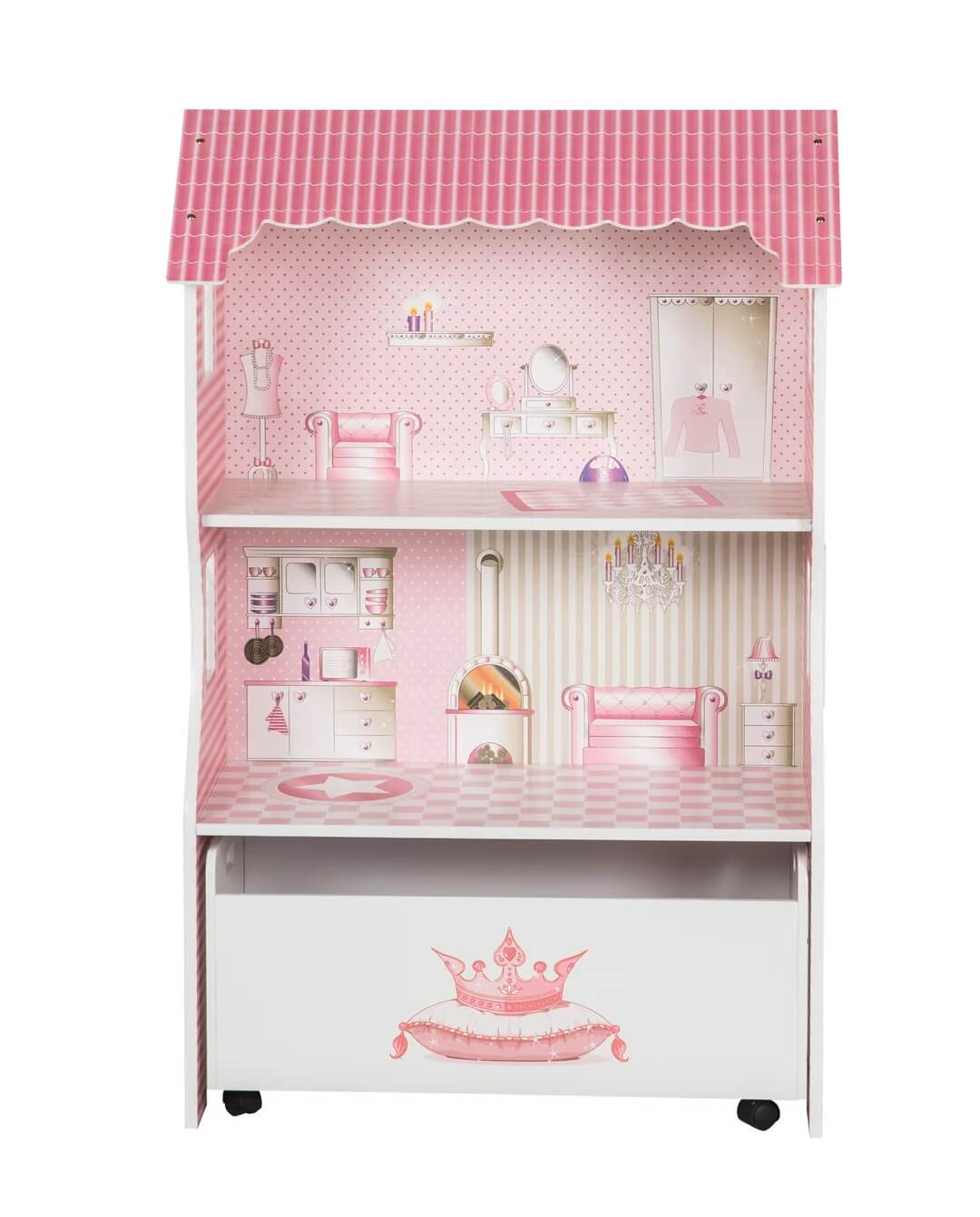 Mit diesem wunderschönen rosa Puppenhaus erwacht eine Märchenwelt zum Leben. Die bemalten Wände und geräumigen Räume bieten eine zauberhafte Kulisse für Kinder, die Prinzessinnengeschichten erfinden möchten. Jede Etage verfügt über ein Schlafzimmer, ein Wohnzimmer und eine liebevoll gestaltete Küche. In der eingebauten Schublade im unteren Bereich des Hauses können Puppen und Accessoires sowie die Kleidung Ihrer Tochter verstaut werden.
