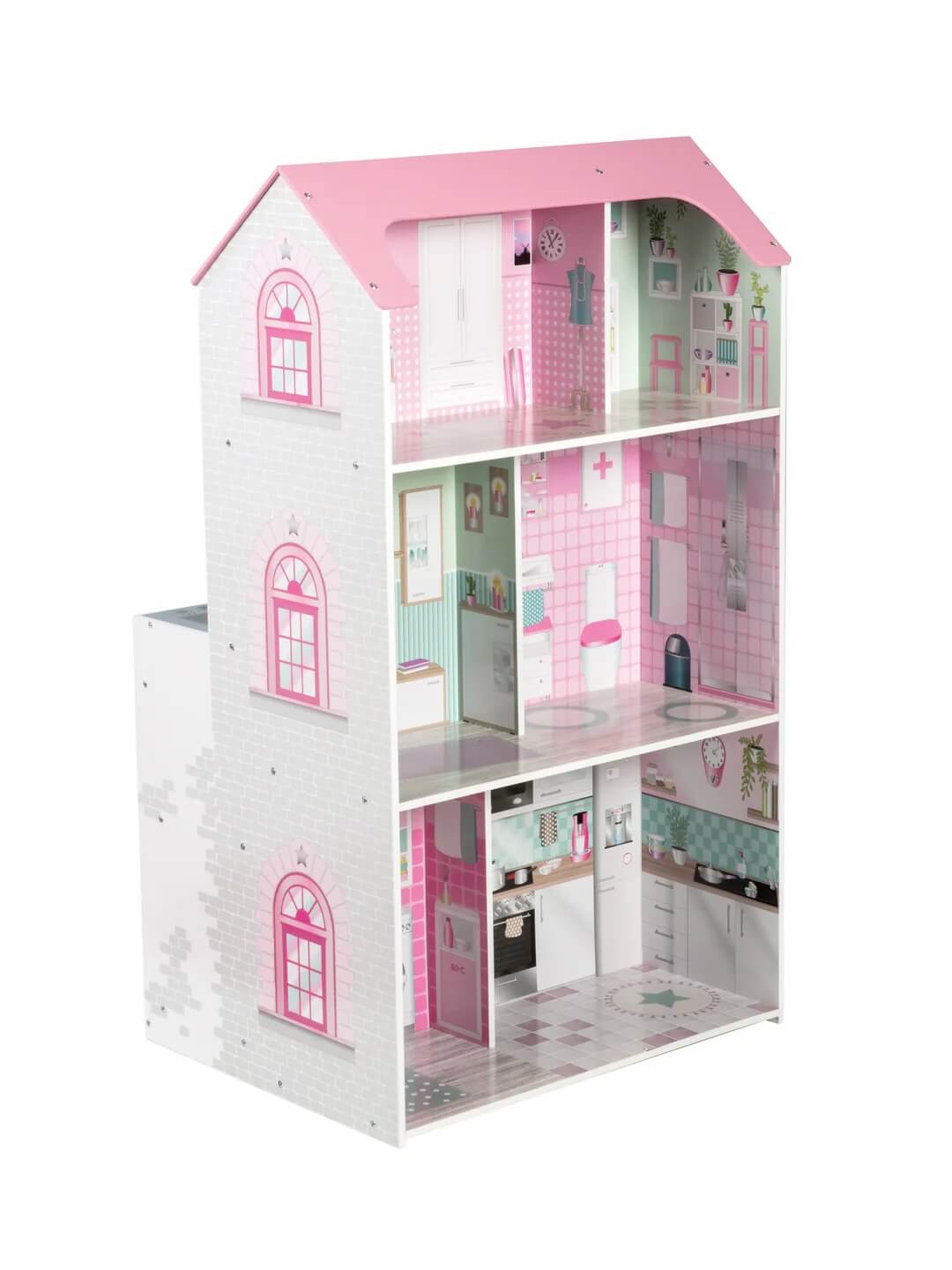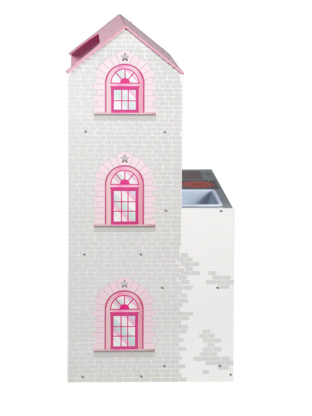 Um ein echter Koch zu werden, bietet unsere Puppenhausküche Kindern Platz zum Kochen. Ausgestattet mit Backofen, Herd, Spüle und sogar Mikrowelle bildet sie eine realistische Küche originalgetreu nach. Die Drehknöpfe machen das Spiel für die Kleinsten noch fesselnder. Das Massivholz dieser Küche sorgt für lange Haltbarkeit. Sie kann im Kinderzimmer aufgestellt werden und ist für Kinder ab 3 Jahren geeignet.