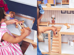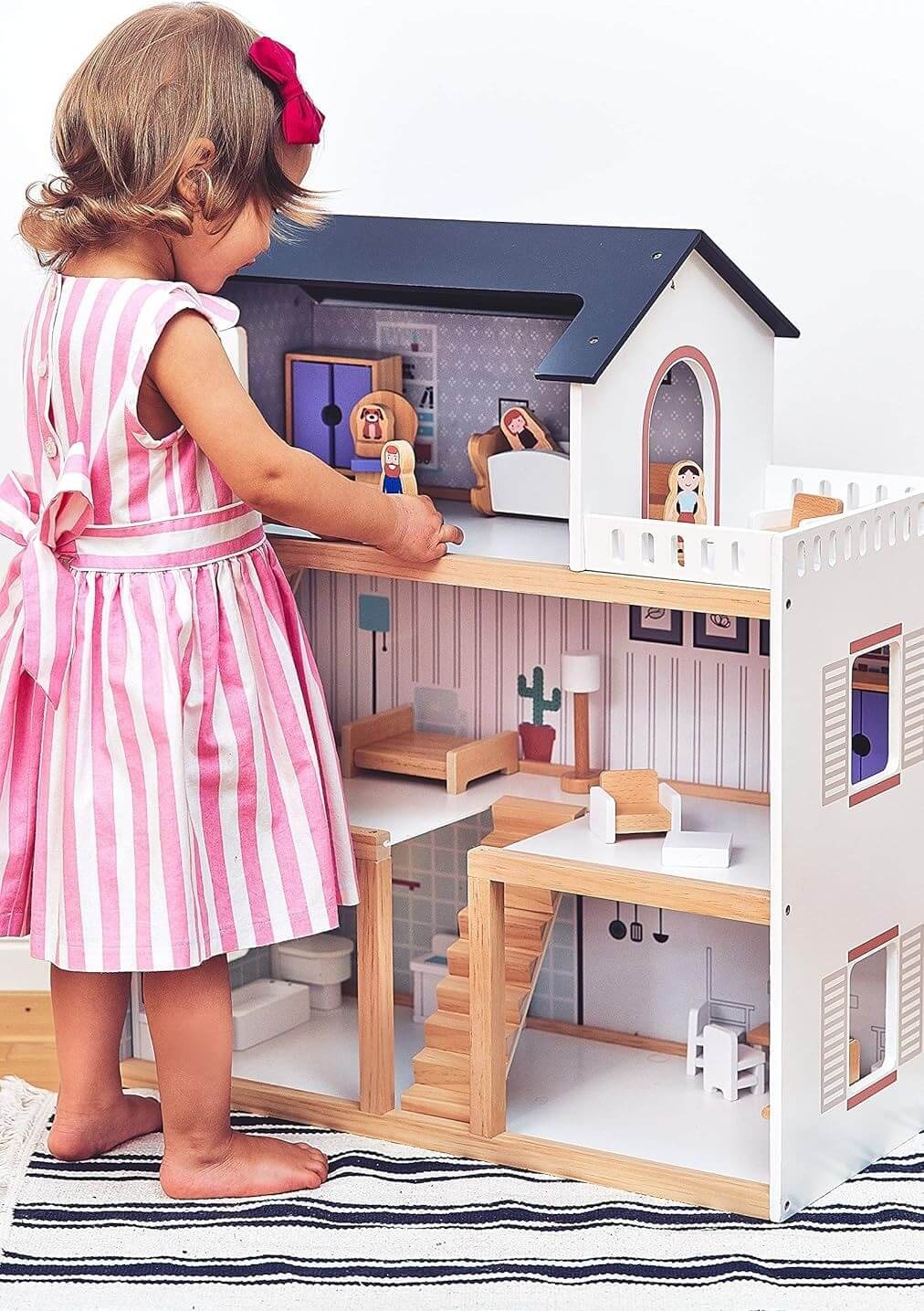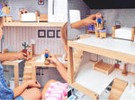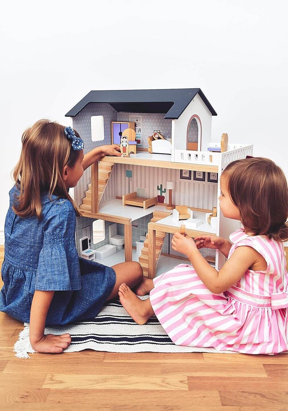 Das Puppenhaus wird mit einem kompletten Set an Möbeln und Figuren geliefert und ermöglicht sofortiges Spielen, ohne dass zusätzliches Zubehör gekauft werden muss. Die Holztreppe unterstreicht die Originalität des Hauses und macht Geschichten für die Kleinen noch lebendiger. Es ist nicht nur ein Spielzeug, sondern auch ein Lernmittel, das Kindern hilft, ihre Fantasie zu entwickeln und Szenen aus dem Alltag nachzuspielen.